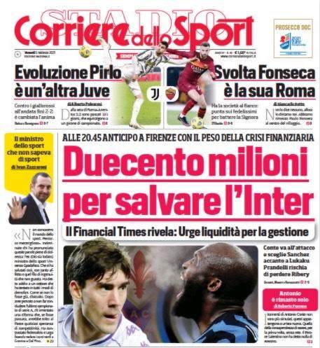 2月5日《罗马体育报》头条报道:2亿美金救命钱
